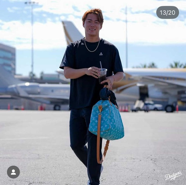 この写真を見たファンからは「朗希くん、元気そうでよかった」「由伸くんのヴィトンはキケとお揃い?」「大谷くんのポストシーズン初登板、もう日曜日が待ち遠しくてたまらないワクワク感!」「小荷物の人、大荷物な人。見ててなんか面白い笑」などさまざまなコメントが寄せられている。