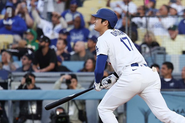 ドジャースの大谷翔平投手は27日(日本時間28日)、本拠地ドジャースタジアムでのブルージェイズ戦に「1番DH」で先発出場。初回の第1打席に右翼線への二塁打を放った。