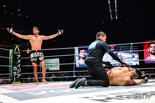 格闘技イベント「RIZIN 師走の超強者祭り」は31日、さいたまスーパーアリーナにて開催。第14試合のライト級タイトルマッチは、イルホム・ノジモフが1ラウンド13秒KO勝ちで王者ホベルト・サトシ・ソウザに勝利した。